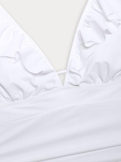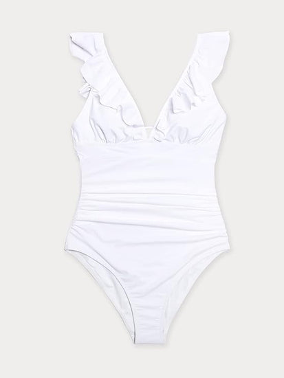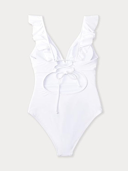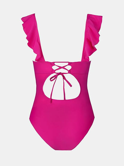 Pleasing Strings Women's Ruffled One Piece Swimsuit V Neck Lace Up
