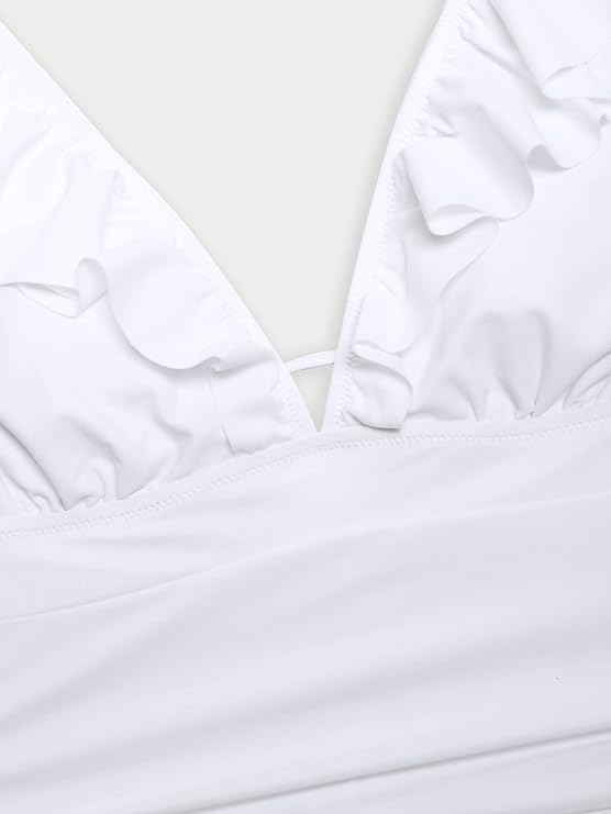 • COMFORT: This swimsuit is designed to be flattering and comfortable, making it a popular choice for many women. Comes with Removable Soft Cups. The ruffled detailing adds a playful and chic touch to the swimsuit, while the V-neckline and lace-up design help to create a flattering silhouette.