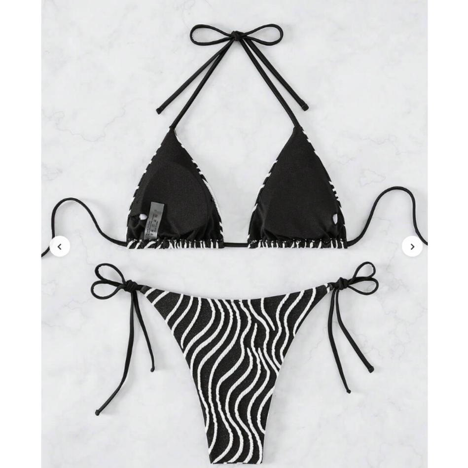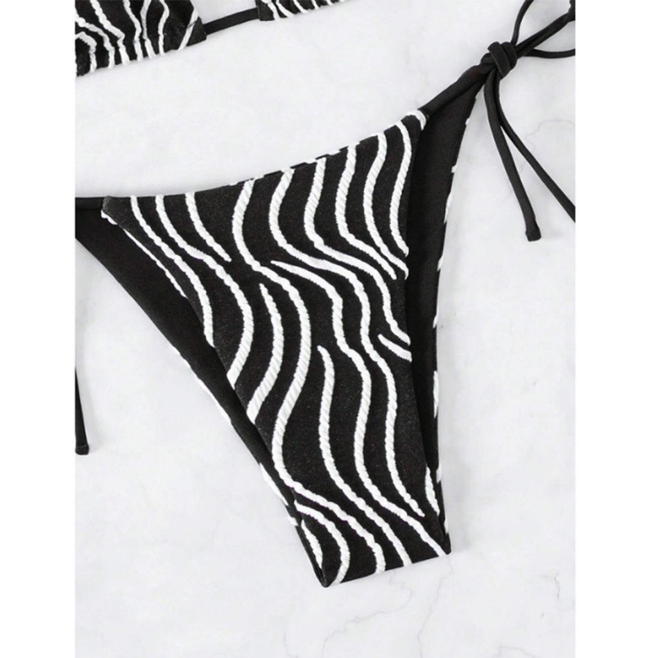 ABOUT: BIKINI SET: The Women 2pc Zebra Striped Halter Triangle Side Tie Bikini Swimsuit is a trendy and stylish swimsuit designed for women who want to make a statement at the beach or pool. FEATURE: This swimsuit features a zebra striped pattern that adds a...
