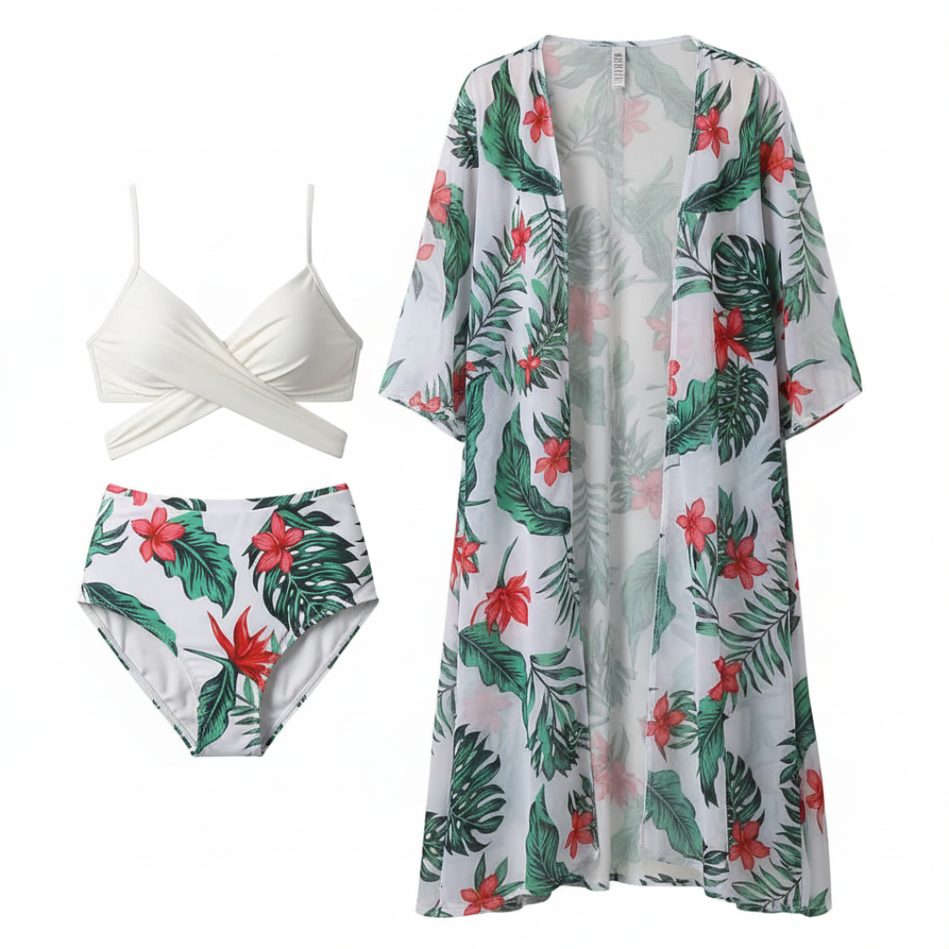 Pleasing Strings Women's 3Pcs Floral Print Bikini Cover Up Set