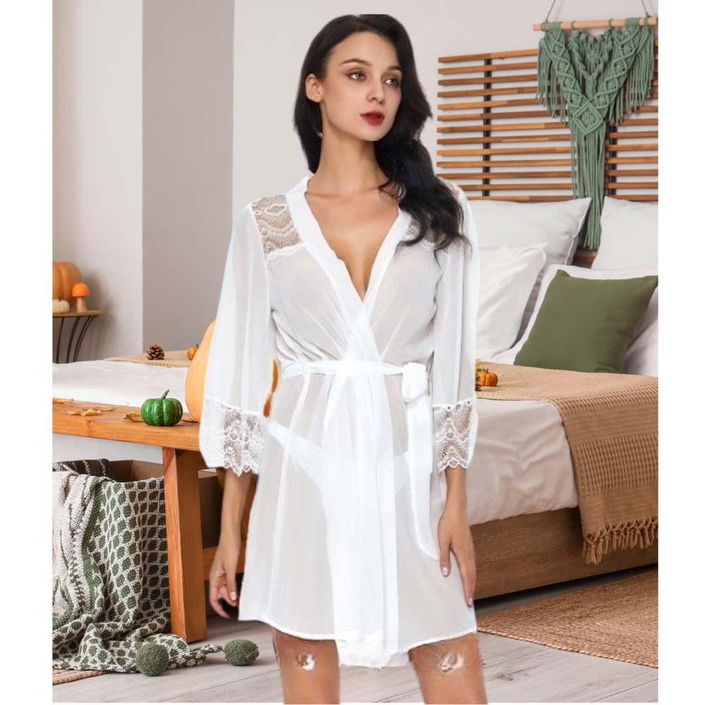 ELEGANCE AND COMFORT: This exquisite robe features lovely lace detailing on the sleeves and a waist-cinching belt, adding a touch of sophistication to its timeless design. Its lightweight construction makes it an ideal choice for layering over lingerie or as an elegant addition to your night-out ensemble.
