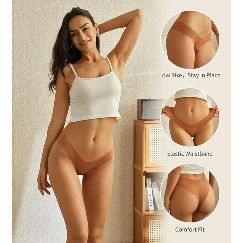 • V-SHAPE: These panties created with a V cut and one piece design that sit below your belly without digging into your skin. These panties for women comes with V-shape low rise can perfectly show your charming waist. Its great to wear under legging or dress. Laser cut can give you an invisible smooth look even under the most clinging outfits.