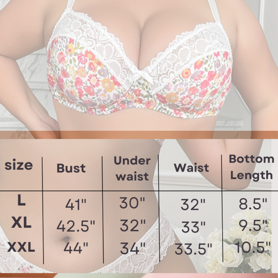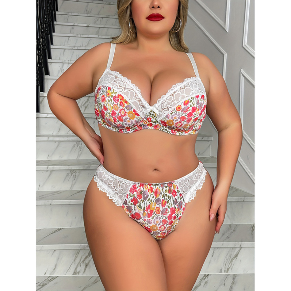 Pleasing Strings Women Floral Print Lace Trim Non-Padded Plus Size Bra Set