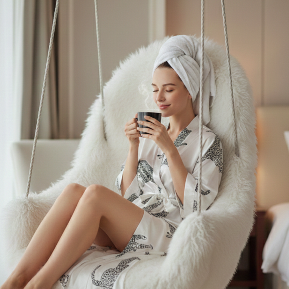 • This robe combines both style and comfort, making it ideal for anyone looking to add a touch of luxury to their everyday routine. Whether you're relaxing or looking for something elegant to wear while at home, this robe makes a perfect choice.