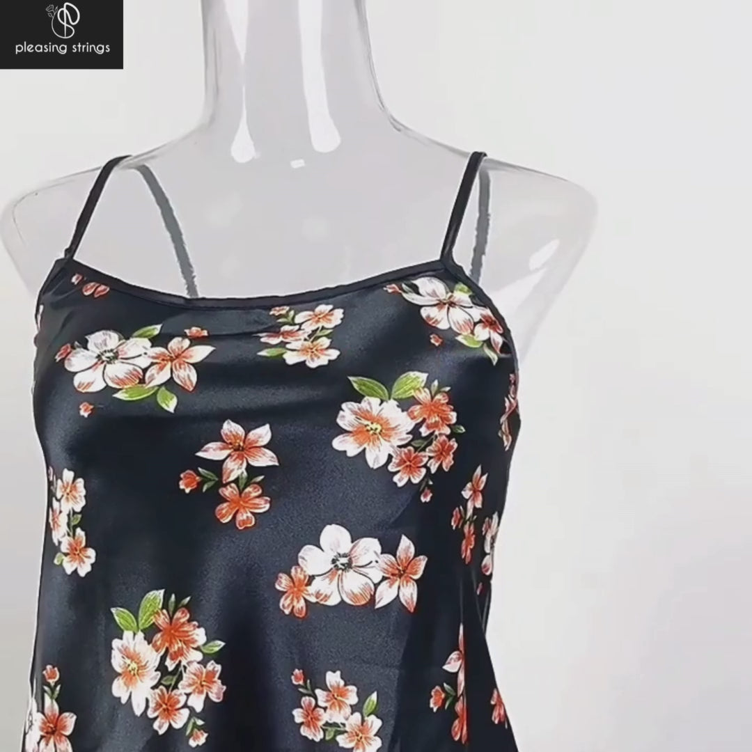 ABOUT: FEATURES: The Women's Floral Print Satin Cami Top with Shorts PJ Set is a stylish and comfortable sleepwear ensemble designed for women. The set typically includes a sleeveless cami top featuring a feminine floral print on satin fabric and matching shorts for bottom wear....