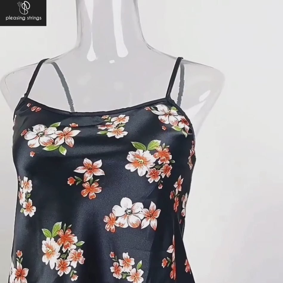 Pleasing Strings Women's Floral Print Satin Cami Top with Shorts Pj Set