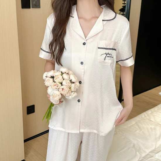 ABOUT: MATERIAL: Made from silk satin, this set feels soft against the skin and has a luxurious sheen. DESIGN: It includes a collared button-down shirt with half sleeves, providing a polished yet relaxed look. PANTS: Typically, the accompanying pants feature an elastic waistband for comfort,...