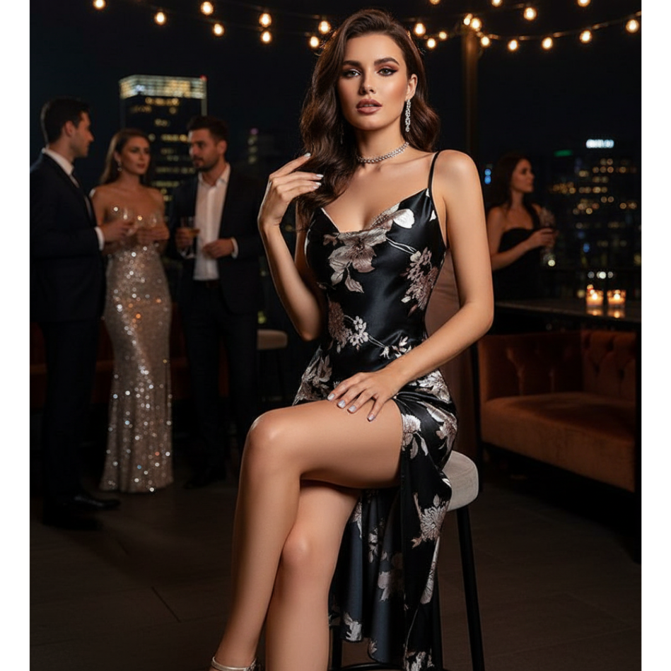 • DESIGN: The pattern adds a trendy and bold touch, appealing to those who appreciate animal & floral prints. The cowl neck & split thigh design enhances the dress's allure, adding an element of sophistication and sexiness.