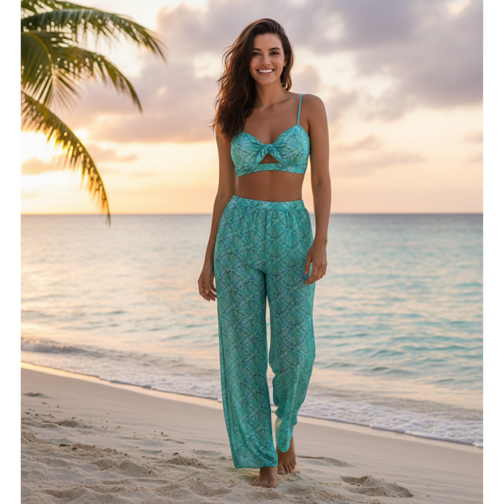 COVER-UP PANTS: The inclusion of cover-up pants allows for easy transition from swimming to casual wear, making it convenient for beachside walks or lounging.